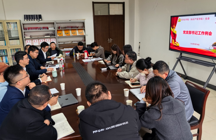 3月18日下午,经济法学院(知识产权学院)党委在长安校区资料室召开党支部书记工作例会,学院党委委员、领导班子成员、全体党支部书记参加会议。会议由学院党委书记李永宁主持。