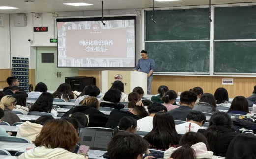 为落实学校“国际视野”育人理念,拓宽新生国际视野,引导其科学规划学业生涯,11月13日,经济法学院(知识产权学院)举办2025级本科新生“国际化意识培育与提升”入学教育讲座。西北政法大学国际处韩烨、贠子璇老师受邀主讲,经济法学院(知识产权学院)2025级全体新生到场聆听。