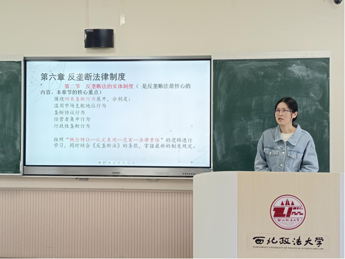 为严格落实学校《本科教学教师课堂讲授基本要求》规定,严把本科教学准入关口,2026年4月17日上午,经济法学院(知识产权学院)在长安校区四号教学楼403教室,开展新开课教师试讲活动。本次活动由学院副院长薛亮主持,学院教学督导专家郑艳馨教授、经济法原理与房地产法教研室主任李军波、环境与资源保护法教研室主任陈娟丽、教务办秘书王林钢参加了活动。